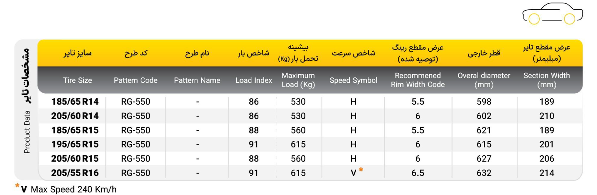 سایزهای RG-550